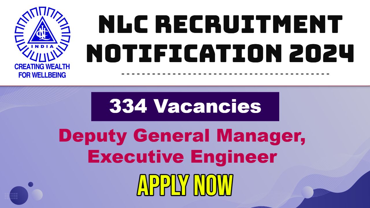 NLC Recruitment Notification 2024 | NLC General Manager, Deputy General Manager, Executive Engineer, etc. job notification | Total Vacancies : 334 | Last Date: 17th December 2024 | Apply Online @ https://www.nlcindia.in/